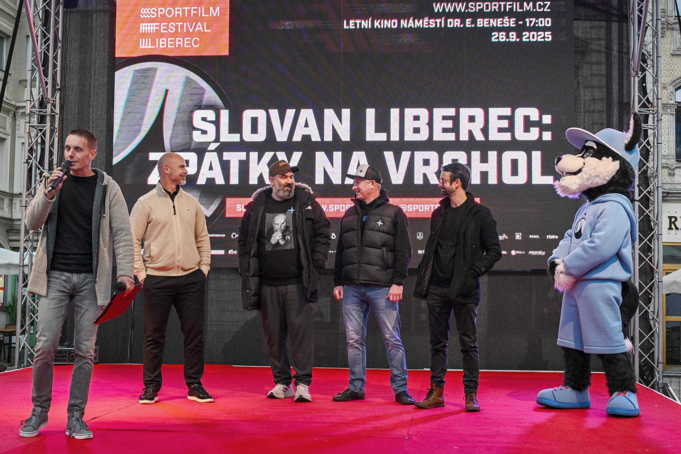Projekce premiérového dílu seriálu Slovan Liberec: zpátky na vrchol za účasti sportovců filmové delegace - herec L. Hampl a kreativní producent One play a TV Nova M. Podzimek.